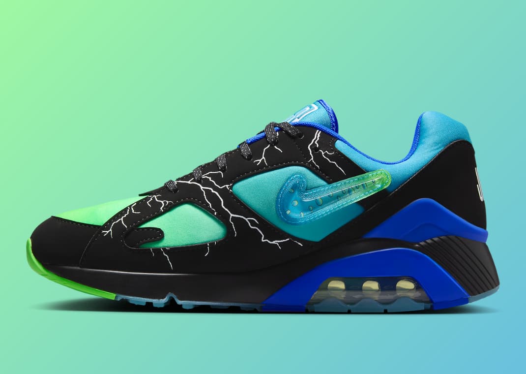 Ja’Kai Taylor’s high-energy personality isn’t stopped by his type 1 diabetes diagnosis. Quite the contrary, as this 9-year-old plays soccer, films TikTok videos about his journey with diabetes, and loves to game. Along with nods to juice boxes and his favorite color, blue, these activities helped create Ja’Kai’s Nike Air 180. The green-to-blue gradient on the mesh base evokes the color palette of power-ups seen in video games, while the bubbly Swoosh represents his love for juice boxes.
