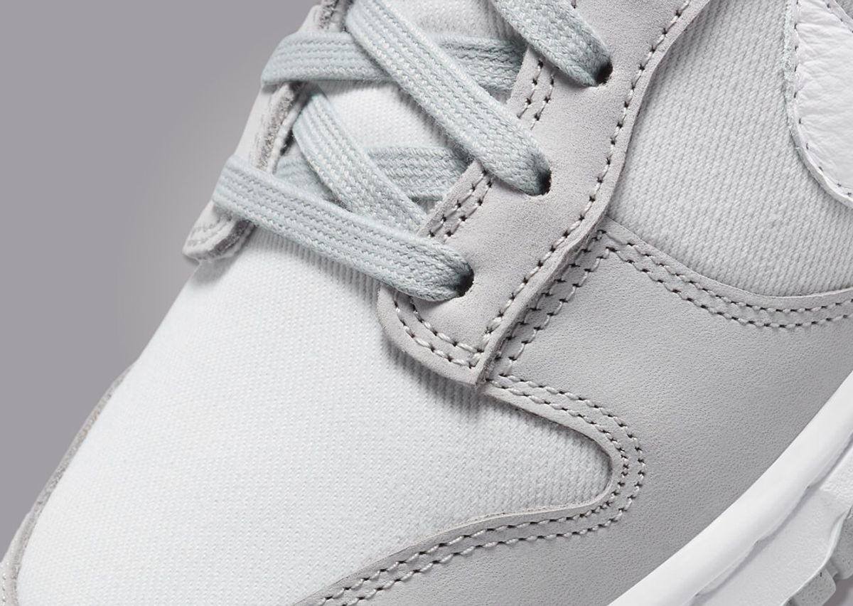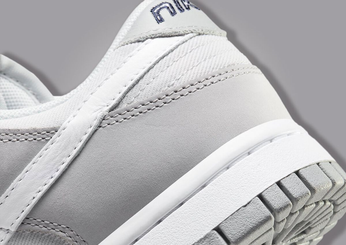 Taking a more premium approach with elevated materials, this greyscale Dunk Low features a mix of leather, suede, and canvas across its upper. This pair sports a light smoke grey color on the canvas toebox, quarter panel, and collar, while the overlays on the mudguard, eyestays, and heel come in a darker grey suede. The tongue and lace set contrasts the rest of the shoe with a light grey hue, and the tongue tag above receives a 3D Swoosh logo. A white leather Swoosh runs back and meets with the grey leather heel tab, completing the upper design. A white Dunk midsole paired with a grey rubber outsole finishes the look.