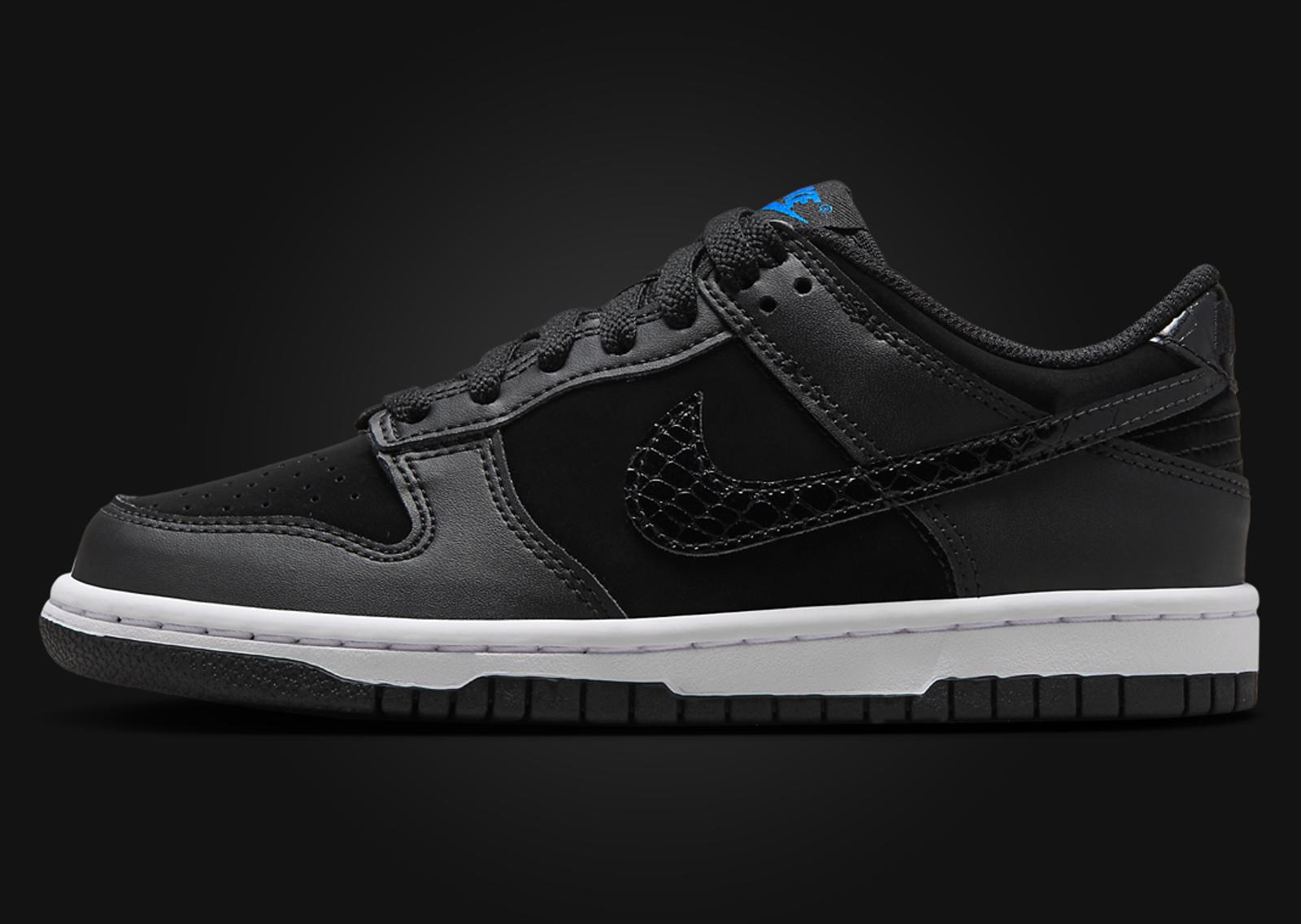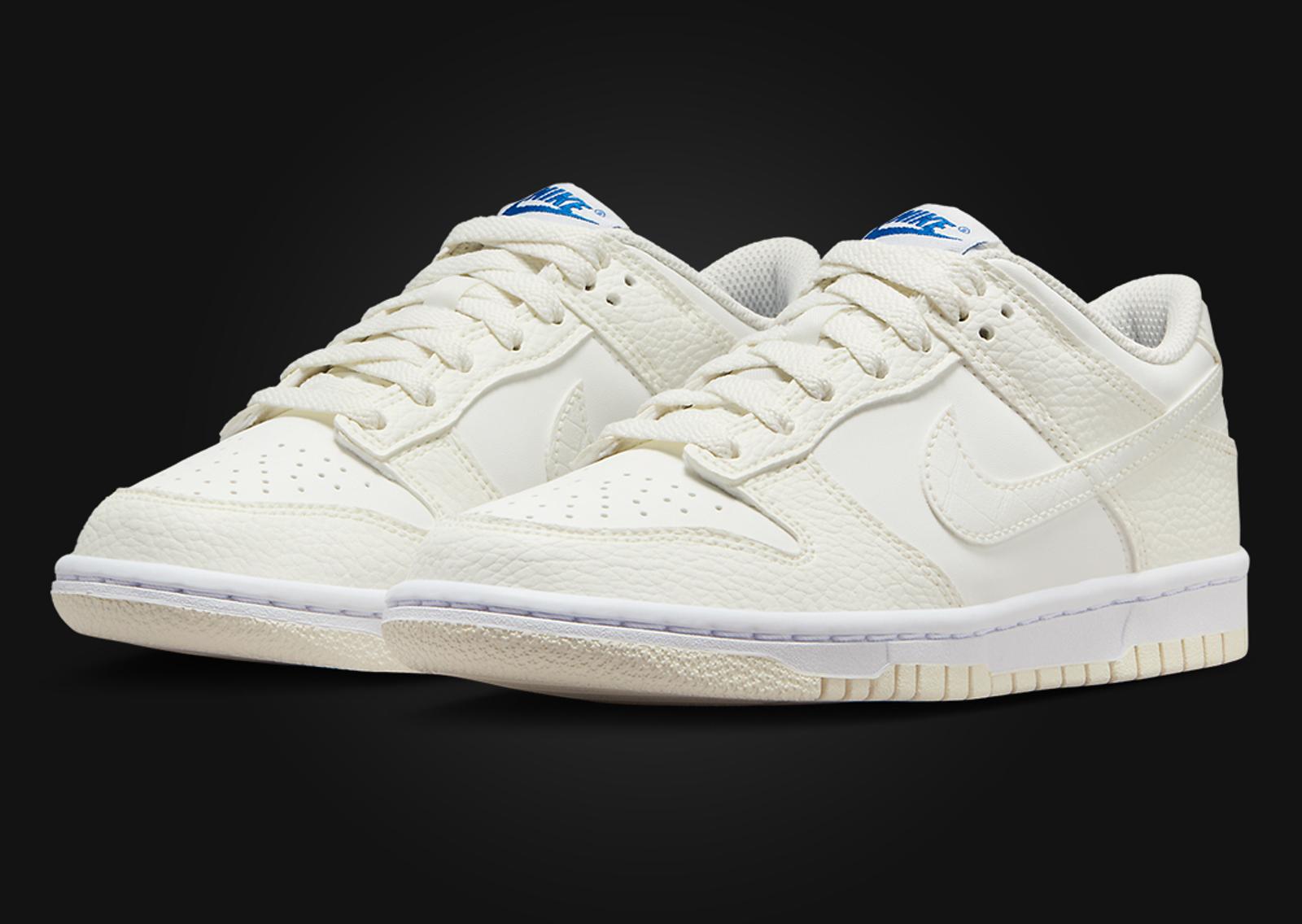 Featuring two SE (special edition) kids' exclusive colorways of the Nike Dunk Low, this Back to School Pack is the first to release, setting the tone for the rest of the summer. Coming in either Sail or Black, each pair is comprised of premium materials, with tumbled and smooth leather covering the Sail pair, while nubuck and synthetic leather adorn the Black. Faux croc skin Swooshes dress the sides of each pair with hits of royal blue present via the Nike branding on the tongue tag and covering the insoles. Classic white Dunk-tooled midsoles sit atop solid rubber outsoles that match the uppers of each respective pair to complete the look.