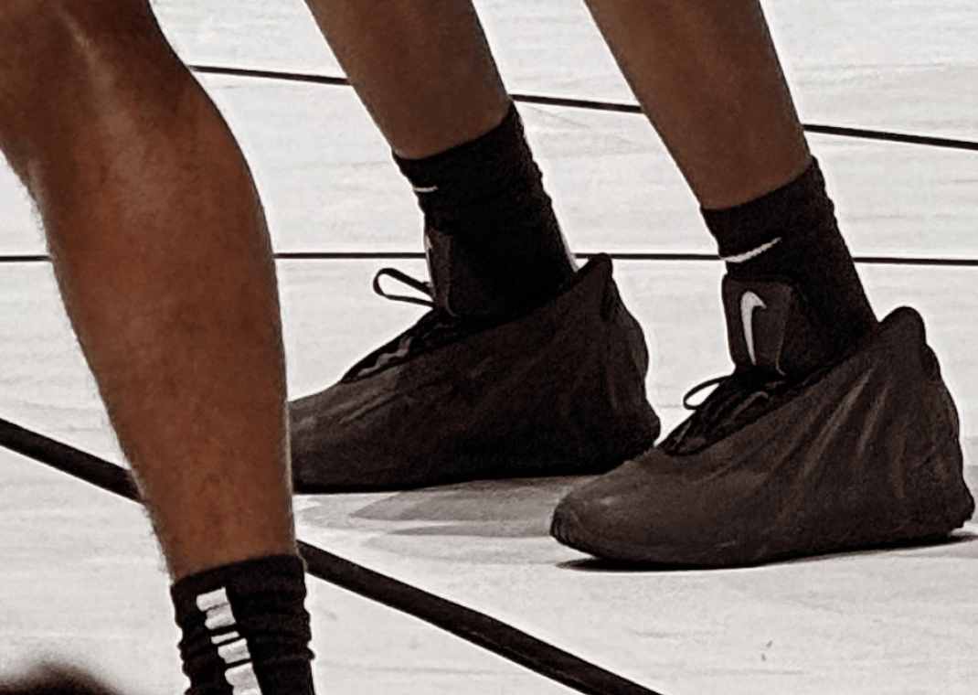 In the matchup against Utah Prep and Dynamic Prep, 18-year-old phenom AJ Dybantsa, currently ranked number one in the 2025 recruiting class and committed to BYU, took the floor in a black pair of Nike sneakers that had never been seen. In addition to Dybantsa wearing the futuristic silhouette, DMV native, Foamposite-head, and artist Wale was spotted wearing the sneaker in an orange colorway.