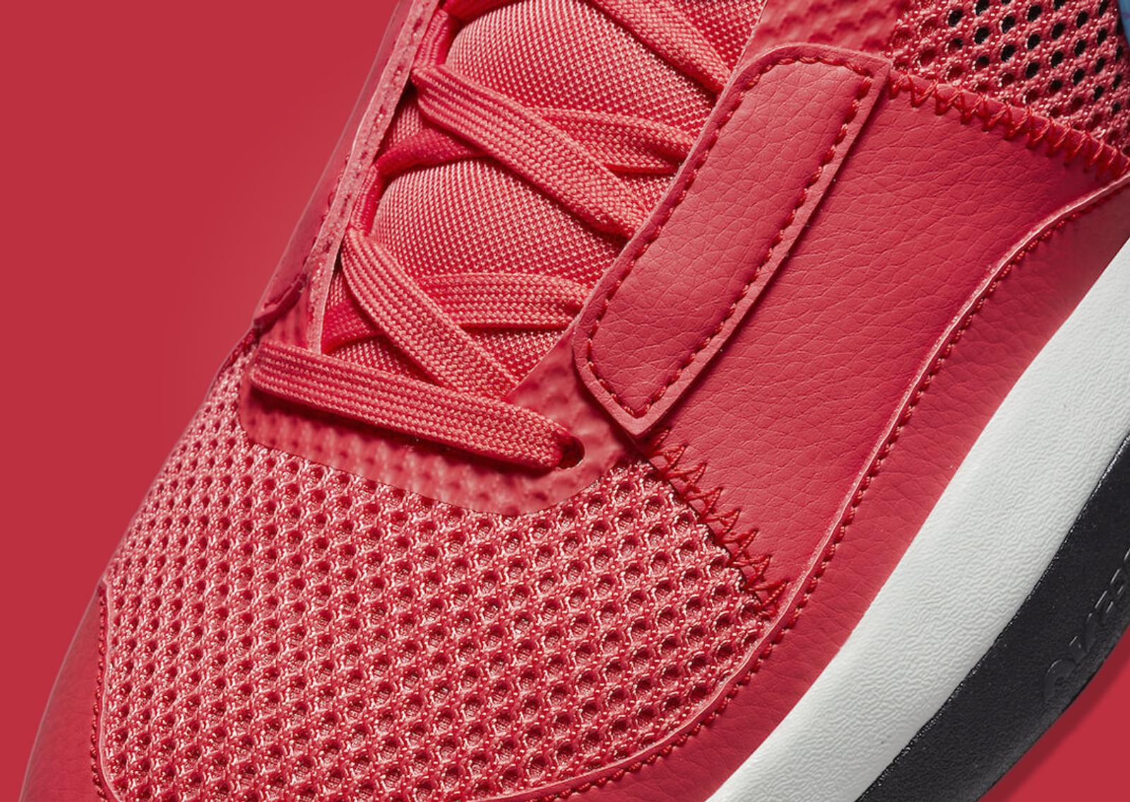 Featuring a bold colorway that is perfect for summer, the model’s upper comes constructed out of a combination of mesh, leather, and TPU overlays, providing both durability and breathability. This "Ember Glow" colorway features vibrant red hues on most of the sneaker, except the Swoosh, which comes in blue lightning. On this logo, we also see a slight purple tint applied as if it was painted atop the blue shade. More accenting hits come along the black sockliner, while the tongue tags come split between purple on the right sneaker and blue on the left. The white foam midsole featuring Zoom Air cushioning provides a nice contrast to the bold upper, while a grippy black rubber outsole rounds out the latest Nike Ja 1.