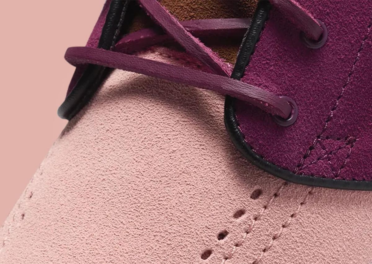 This latest rendition of the Nike SB Zoom Janoski OG+ celebrates its iconic design, boasting a harmonious blend of suede and leather for the upper. Setting the tone, the red stardust shade beautifully adorns the base layer, specifically on the toe and heel sections. This fiery hue is juxtaposed against a subtle purple on the midfoot panel, offering a delightful contrast that elevates the shoe's aesthetic. Further enhancing its design, raw leather laces in a similar purple shade bridge the upper together. The branding of Stefan Janoski stamped onto the brown suede tongue and insole exudes authenticity and roots the sneaker in its storied past. Black leather, which lines the midfoot panel, contrasts starkly with the collar and sockliner. This stands atop a sail rubber midsole complemented by a matching outsole.