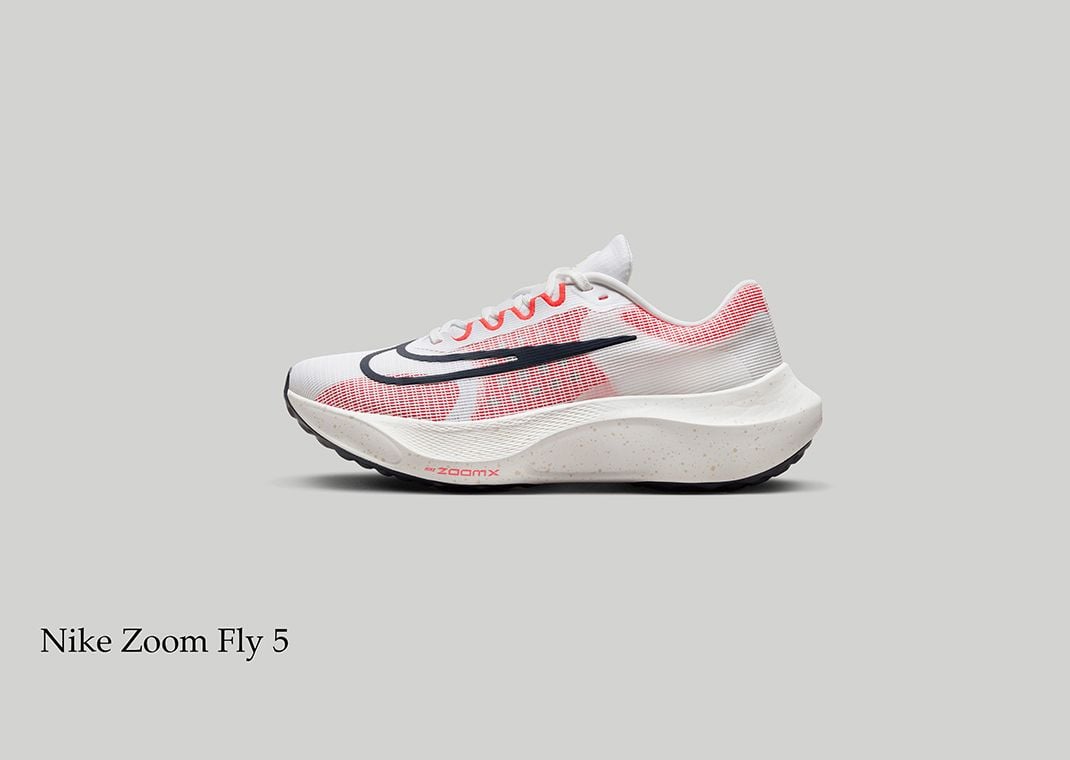 Bridging the gap between a training and race day shoe, the Nike Zoom Fly 5 offers reliable cushioning, a propulsive sensation, and comfort like no other. On top of this, the model utilizes a recycled ZoomX midsole that provides the same comfort as a standard ZoomX foam while being more environmentally friendly. Across the upper sits a double-layer mesh and padding that perfectly blends together comfort, durability, and breathability while underfoot you’ll find a carbon fiber Flyplate and rugged rubber outsole.
