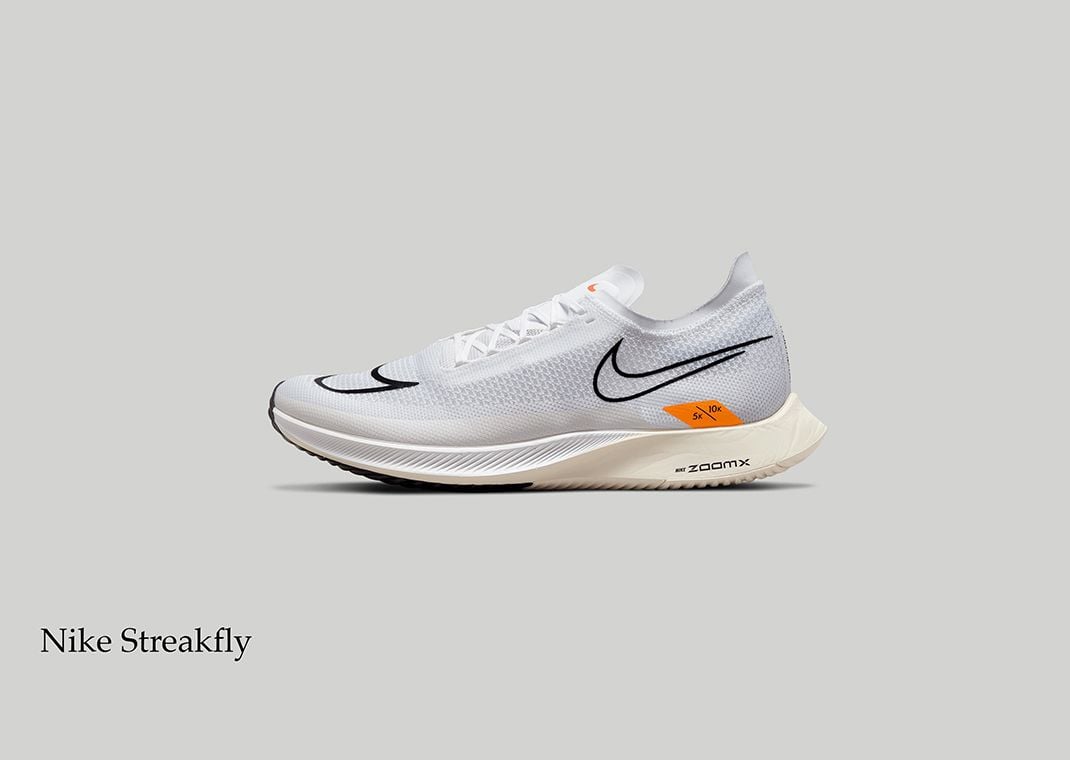An ultralightweight design, the Nike Streakfly was specifically crafted to help runners take on competitions like mile runs, 5ks, or 10k races. Thanks to its low-cut design and sleek details, Nike claims it “feels like it disappears on your foot” and helps you connect with the road ahead. Flyknit across the upper combines with the full-length ZoomX midsole for an ultra-responsive and comfortable ride. Instead of carbon fiber, Nike places a Pebax plate as its midfoot shank for stiffness, stability, and a propulsive ride. For its outsole, Nike took data from runners to place specific patterns in the right spots to give solid traction on all surfaces.