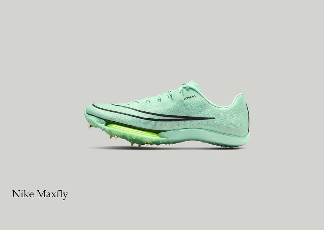 The latest in Nike’s sprint sneakers, the Nike Maxfly is designed for runners covering the 100-meter and 400-meter sprint. Woven synthetic materials on the upper give a secure and lightweight feel to the model while Zoom Air at the forefoot and two cushioned Air units add extra stability and spring to your step. Carbon fiber is also utilized and tuned in the midfoot and heel for a stiff feeling where needed. On the outsole, seven removable spikes give you traction and the shock wave traction pattern was designed from NSRL athlete data.