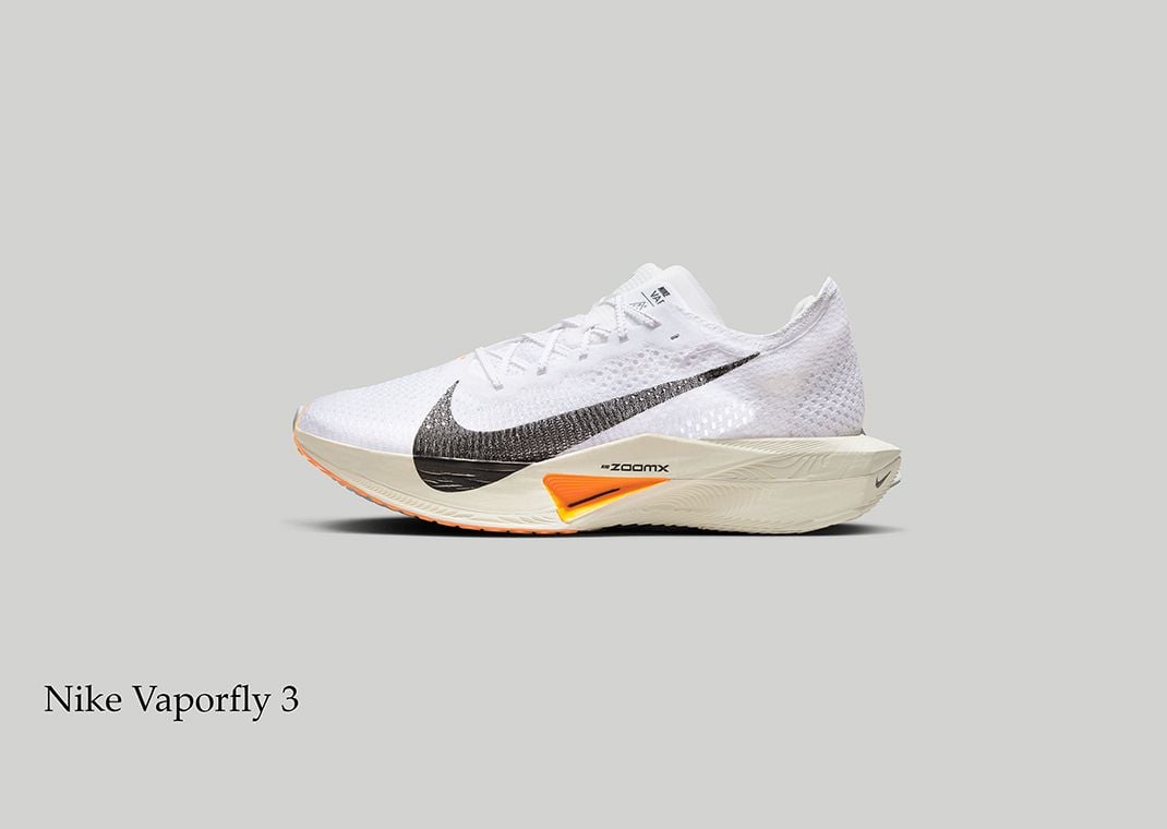 Recently introduced by Nike via a large press release, the Nike Vaporfly 3 acts as an all-around racing shoe for all distances and runners. Flyknit across the uppers receives a zonal design to support stability and breathability on various portions of the model while the midsole’s ZoomX cushioning gets a geometrical-inspired reductive midsole design thanks to a convex shape on the inside of the foot. Carbon fiber beneath your foot also helps with propulsion while the thin outsole rubber lowers the weight of the sneaker without compromising durability.