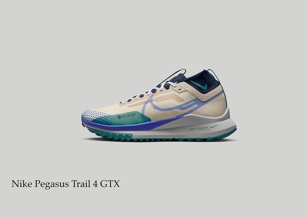 Enhancing the Pegasus Trail 4 into a weather-resistant Gore-Tex-covered mid-top trail sneaker. A layer of Gore-Tex wraps around the entire upper to prevent water and debris from entering your sneaker while still maintaining the comfort level of the standard Pegasus Trail 4. Around the ankle, a covering helps ensure water and trail debris doesn’t enter your sneaker. Underfoot sits the full-length React midsole while a rubber outsole wraps up near the toe to provide extra durability.