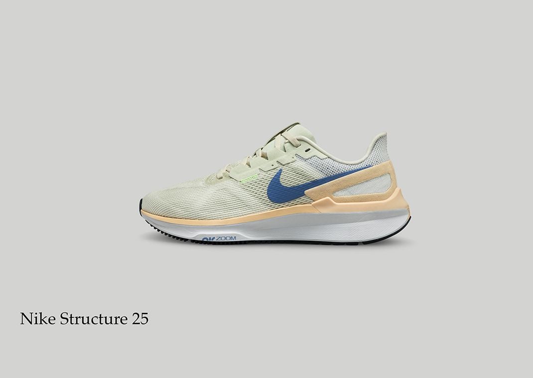 Beginning back in 1998, the Nike Structure has always given long-distance runners a comfortable option. For the 25th iteration, the Nike Structure 25 features a single-layer mesh with enhanced arch support and extra cushioning for those that overpronate. This cushioning system features Cushlon 3.0 and Air Zoom units to give better energy return and a softer ride underfoot.