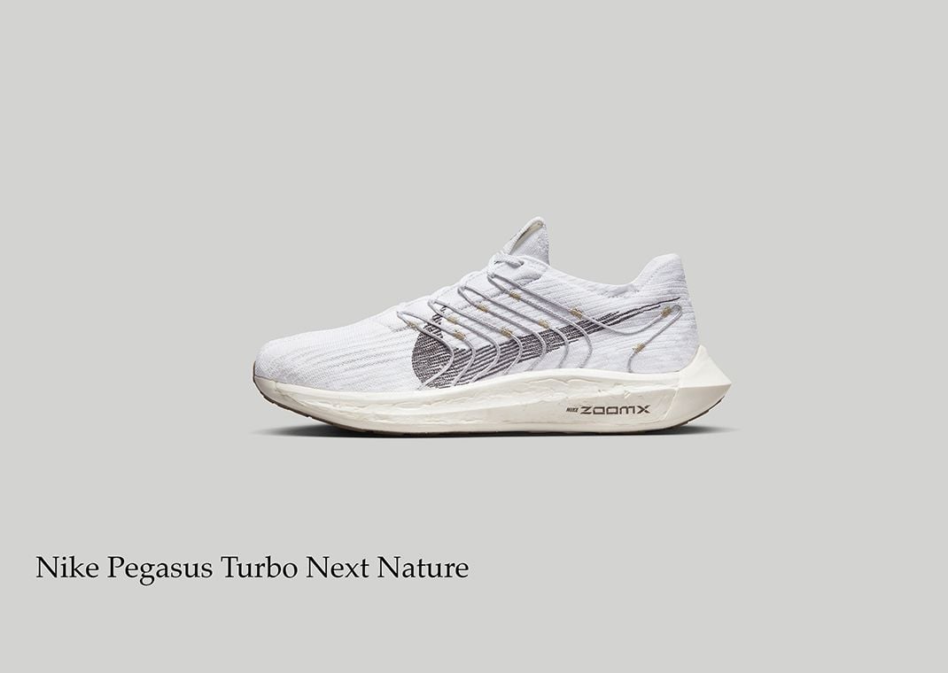 Providing an everyday performance runner while keeping sustainability in mind is where the Nike Pegasus Turbo Next Nature steps into Nike Running’s lineup. Containing at least 50% recycled content by weight, the silhouette’s Flyknit upper gives security and comfort when on foot while the ZoomX cushioning system gives bounce with each and every step. Given the shape of a rocker, each stride feels even more natural and provides flexibility when your foot rises from the ground, gives a smooth ride when moving forward, and cushions you each time you make contact with the ground.