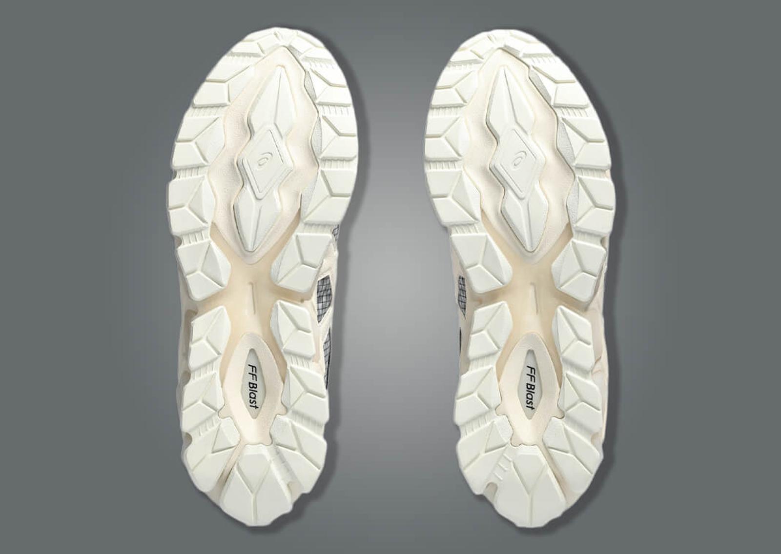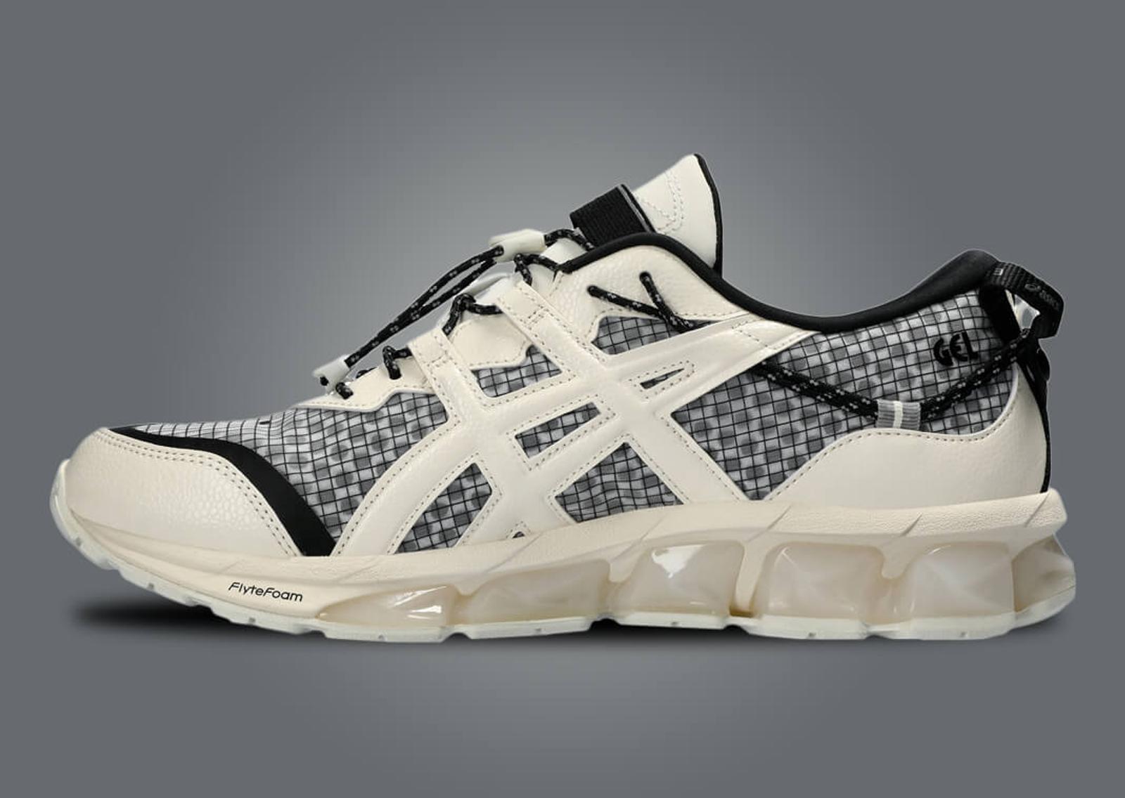 At the core of this design lies a creamy upper, elegantly interrupted by hints of grey across the ripstop grid pattern. Leather embellishments, sweeping across the mudguard, eyestays, and even the Asics logo, carry the same soft cream hue, lending the shoe a harmonious aesthetic. Contrasting this is the two-toned black and grey lace set, which journeys up to the heel. A subtle nod to their roots, Pace's signature is tastefully imprinted on the toe cap and midfoot. However, the creamy, Gel-cushioned midsole, enveloped by semi-transparent clear rubber, truly completes the sneaker, culminating in a solid cream outsole that adds the final touch.