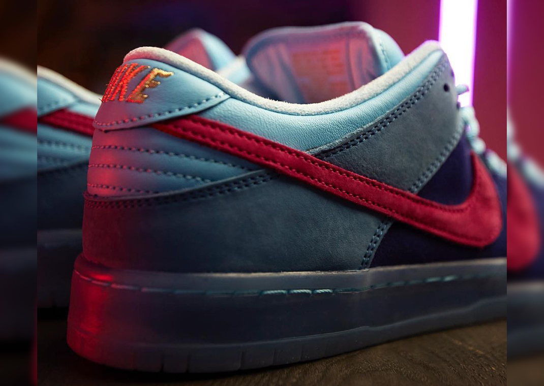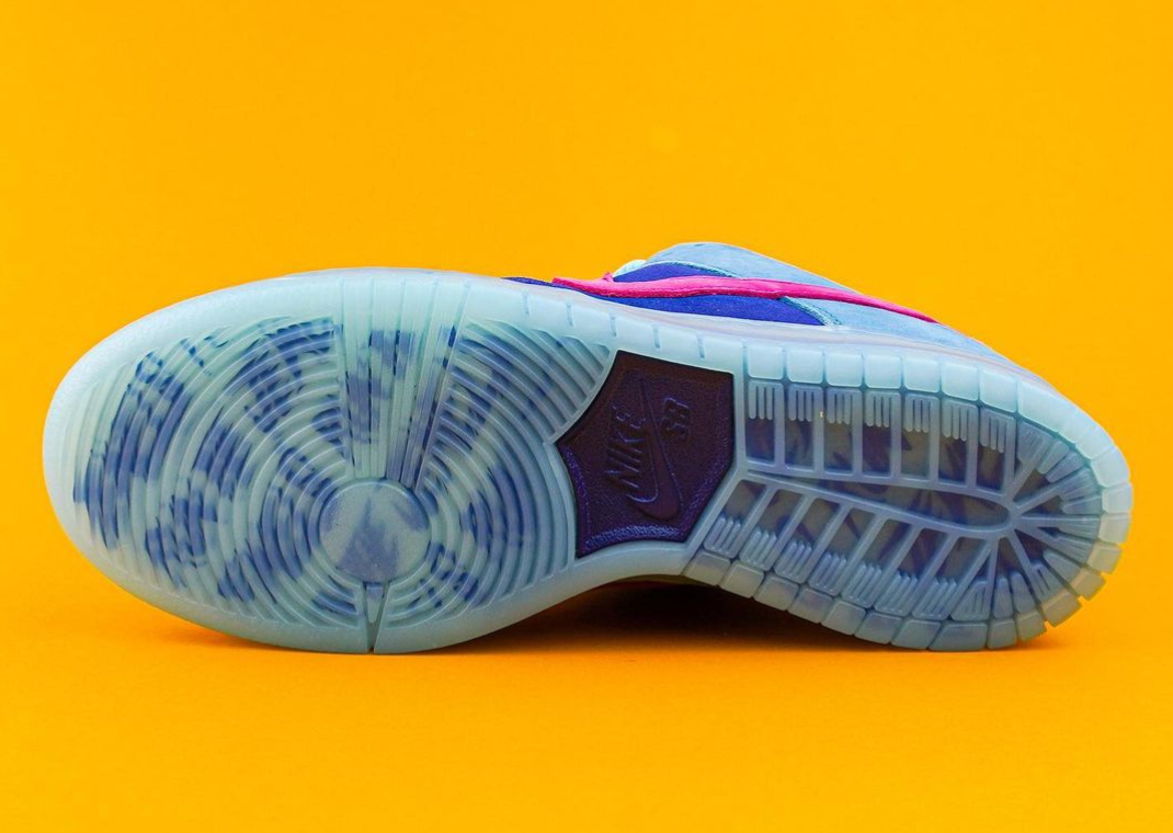Painted in a vibrant blue color scheme which is reminiscent of the album cover for Run The Jewels' third album, aptly titled Run the Jewels 3, this SB Dunk features a smooth all-leather construction with neon pink Swooshes across the lateral and medial side panels that possibly nod to the cover of RTJ4, which released back in 2020. The duo's iconic hand signs are finely stitched around the back, with the left one symbolizing a gun and the right representing a fist handing over a necklace. Underneath the insoles, you'll find the names of both artists complete with their respective birthdays. This special edition Dunk is then finished off with a marbled midsole underfoot that's as unique as it gets.