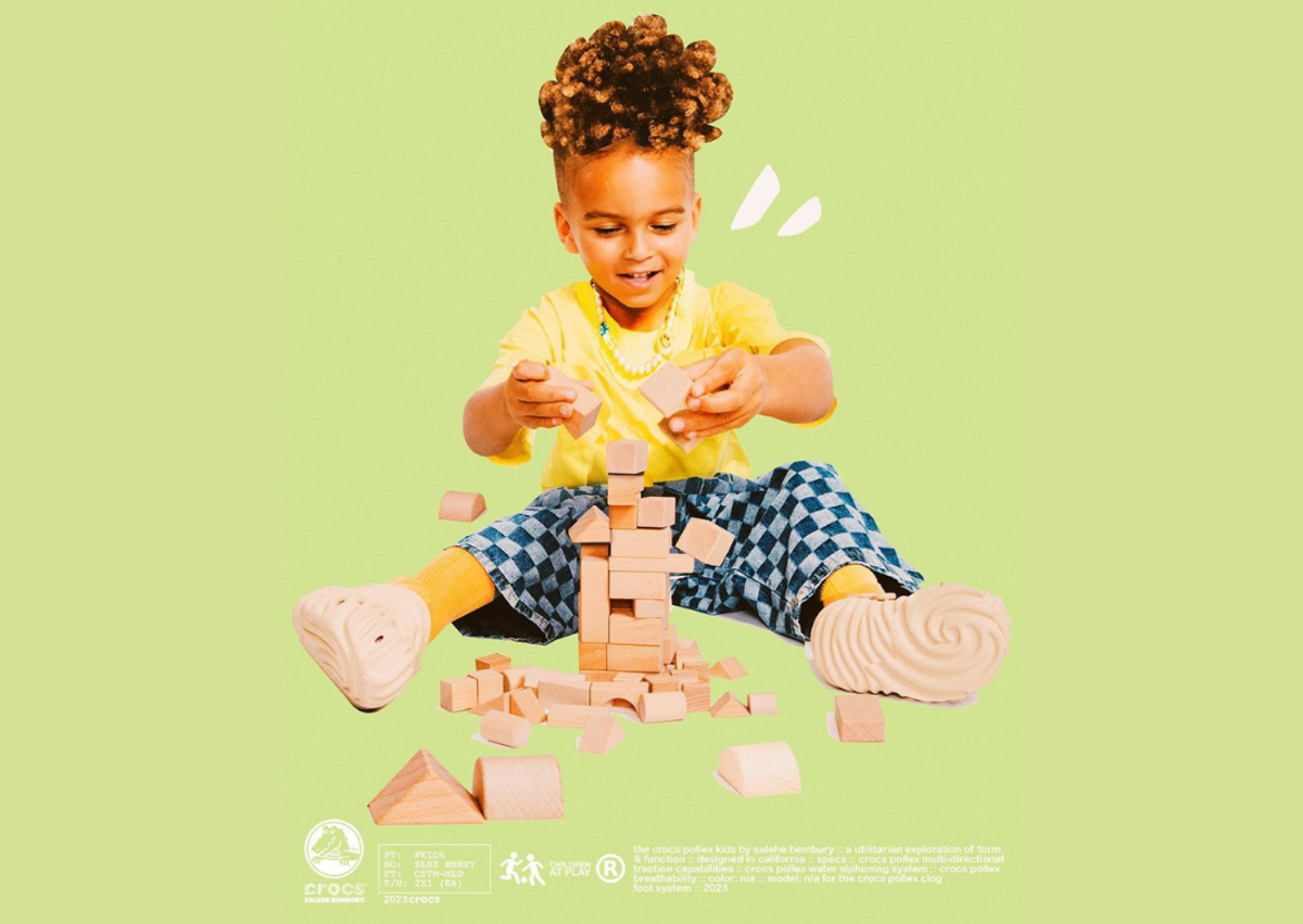 Working for the likes of Yeezy, Cole Haan, and Versace in the past, Salehe Bembury has been making waves in the sneaker industry as of late. His Crocs Pollex Clog design took the sneaker world by storm over the last two years. This partnership became one of the most successful for Crocs, so much so that Bembury has been named the Creative Director of Crocs’ new Pollex Pod Collection. Following this news, Salehe took to Instagram to showcase a photoshoot that teases, for the first time, his Pollex Clog in kids’ sizing.