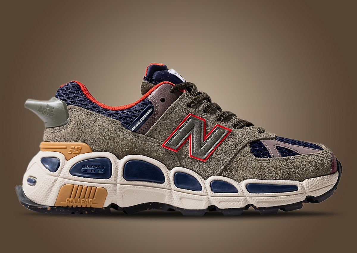 Running up through the eyelets are the flat laces, contrasting the mesh tongue with New Balance Yurt branding on the tongue tag up top. Sitting atop the midfoot panel is the New Balance N branding with a Salehe Bembury tag located nearby on the lateral side. The most eye-catching and unique detail on the silhouette is located on the heel with a functioning whistle protruding off the heel counter. Rounding out the look is a redesigned chunky Abzorb cushioned midsole paired to a trail-ready rubber outsole.