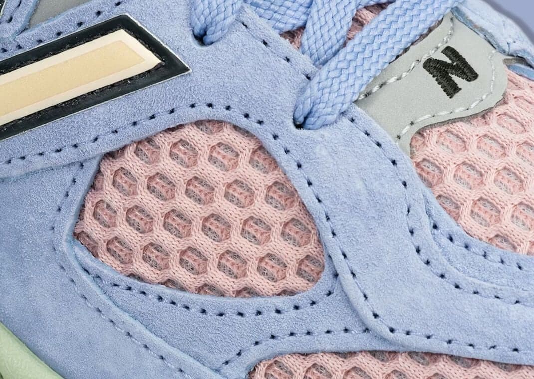 As reported by PredixLabs on Twitter, two distinctive colorways of the New Balance 9060 crafted by The Whitaker Group are on the horizon. A meticulous blend of pastel shades, these sneakers remind us of the vibrant artistry of Joe Freshgood, especially the Mint colorway that resembles JFG's latest 993 ensembles. Craftsmanship shines through in the premium suede uppers juxtaposed against a wide-spaced mesh base. The iconic "N" logo proudly sits on the midfoot, and the shoe is elevated by its stacked sole. One variant flaunts a blue-hued multi-layered suede overlay contrasted with a pink mesh base, sitting atop a green-tinted foam midsole and a stark black outsole. Its counterpart comes in a mint and grey color scheme. The foam midsole adopts varying shades of grey, while a creamy palette graces the rubber outsole.
