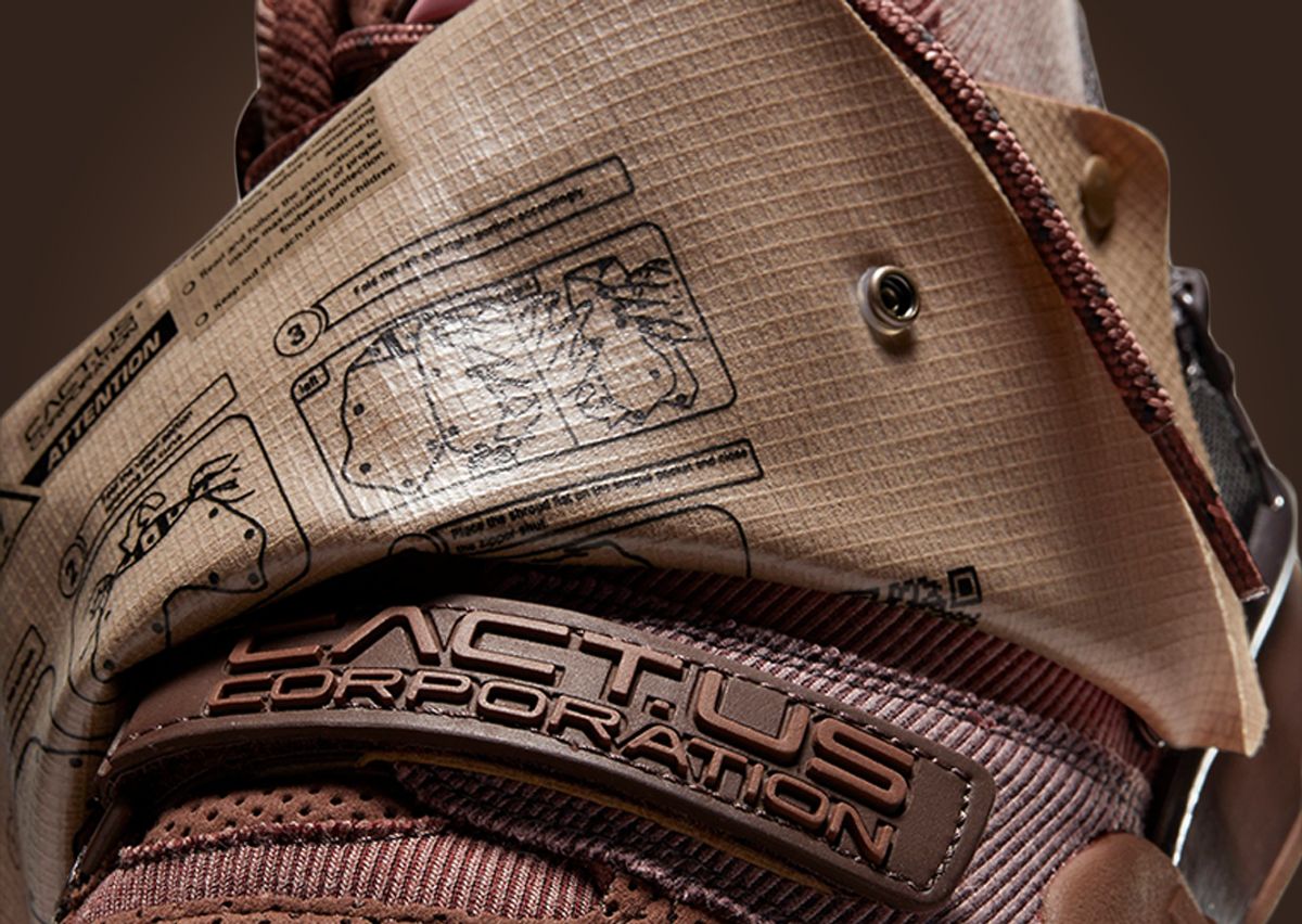 On the utilitarian front, Scott adds buttons throughout the upper to allow for a tonal sheath to be placed, covering the front half of the sneaker. Back on the heel, a zipper allows for storage options, though space is quite limited. Rounding out the look is the two-tone brown midsole and rubber outsole combo.