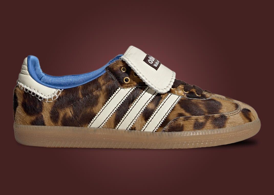 So far, only images of the Fox Brown Samba have emerged, which features nylon fabric, setting a distinct backdrop for the overlaying suede in matching tones. Complementary sandy beige leather adorns the iconic Three Stripes, heel tab, and the subtly placed Wales Bonner text on the shoe's lateral heel. More branding is prominently displayed on the shoe's elongated flipped tongue and the lace aglets. Bringing a splash of color to the otherwise earthy palette, the interior boasts a striking lucky blue leather sockliner. The near-black gum rubber sole finishes off the design, grounding the shoe in its classic roots.