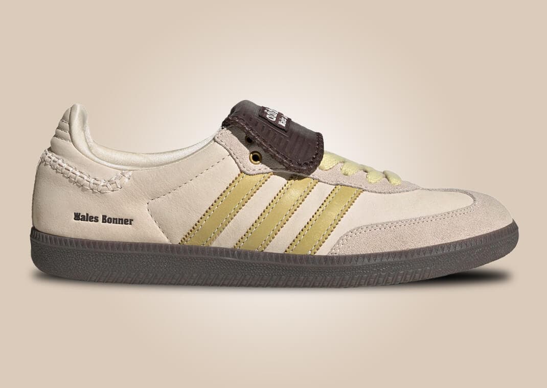 As for the other Samba colorway, nubuck is employed across the upper with yellow leather taking over the Three Stripes on the midfoot. Tonal suede overlays on toebox and eyestays keep things cohesive while the flipped tongue sharply contrasts the lighter hues with its dark brown finish. Wales Bonner branding on the heel and a gum sole unit round out this colorway.