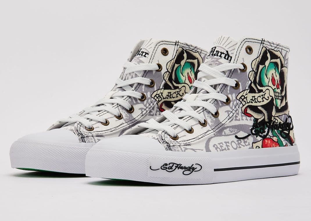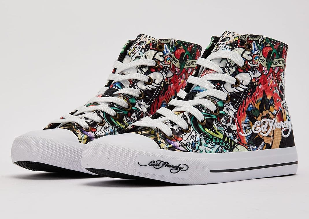 While we’re past the brand’s golden age, Ed Hardy is making a comeback. Not only are the vibrant tattoo-inspired graphic shirts and accessories finding new life in 2025, but so too are the footwear offered by the brand. Various Ed Hardy shoes are available online across different platforms, including high-top and low-top versions of the brand’s silhouettes.