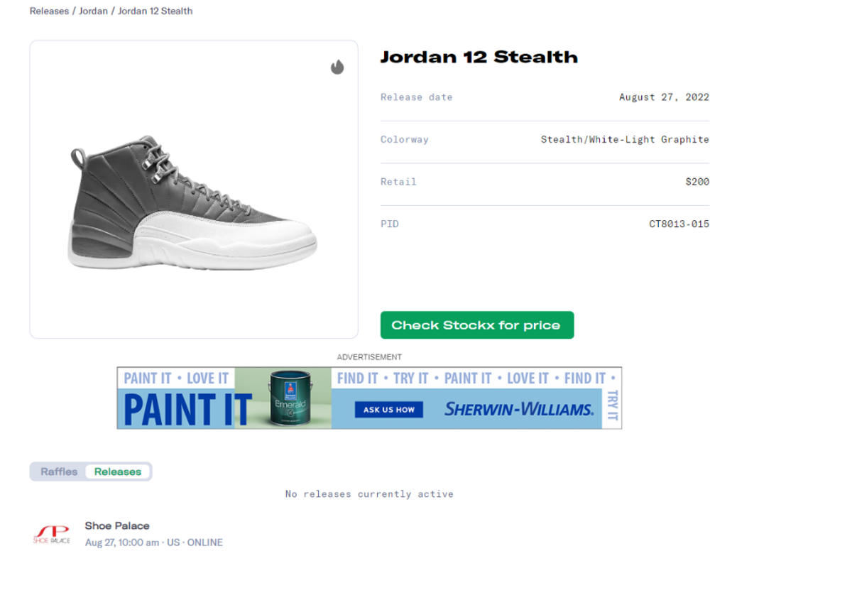 Sites releasing the Air Jordan 12 Retro Stealth