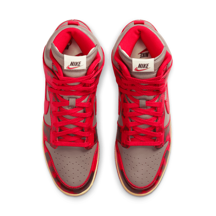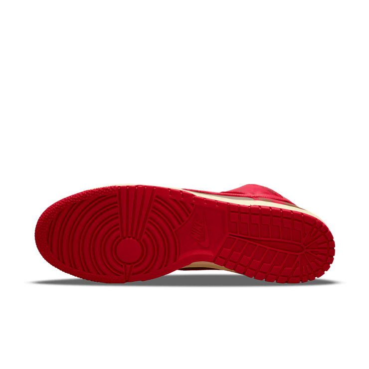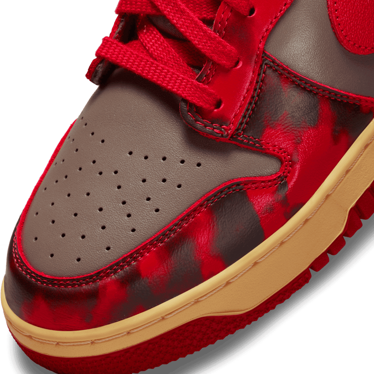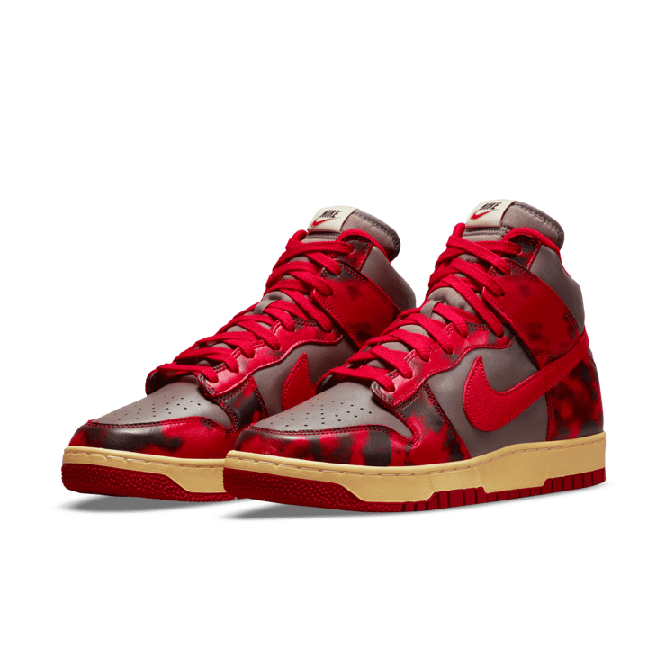 The Nike Dunk High 1985 Acid Wash Red is one of the first two colorways from the “Acid Wash” Pack set to drop in 2021. Coming in university red and chile red, this version of the Dunk High channels its original look from 1985. Featuring an acid-wash-like treatment on the red overlays. Grey premium leather underlays and a red Swoosh on the sides finish the upper. An aged yellowing midsole sitting atop a red outsole round things out.