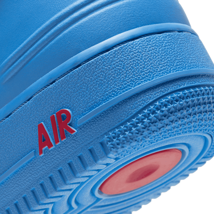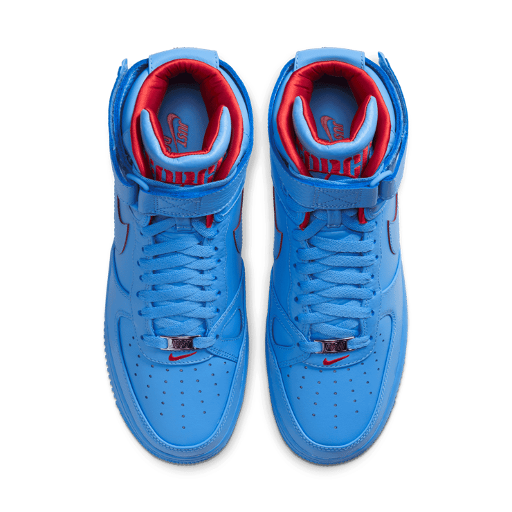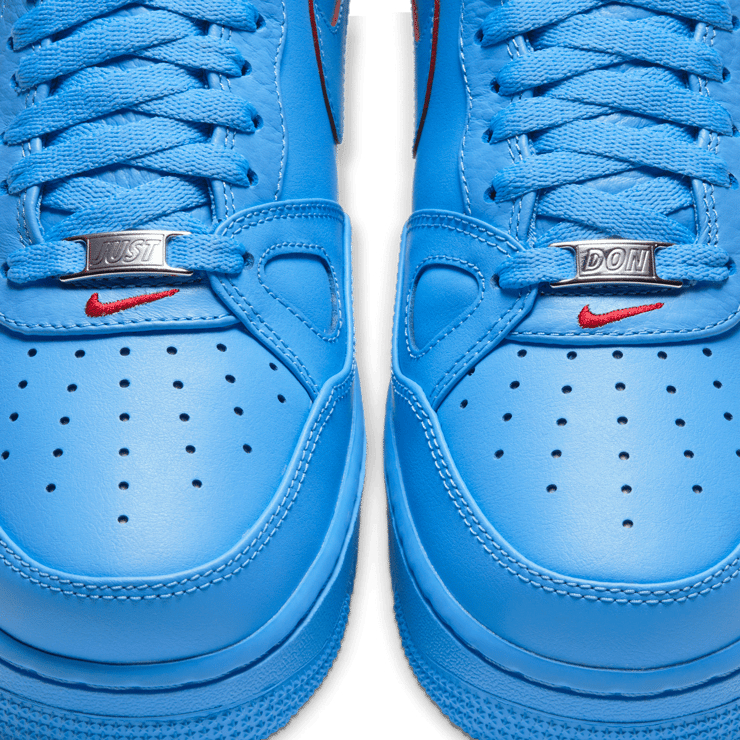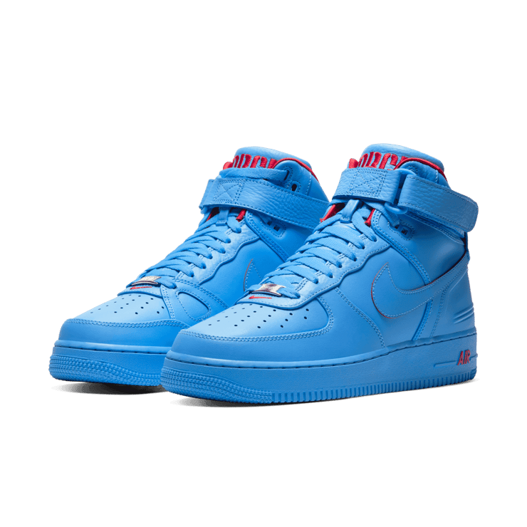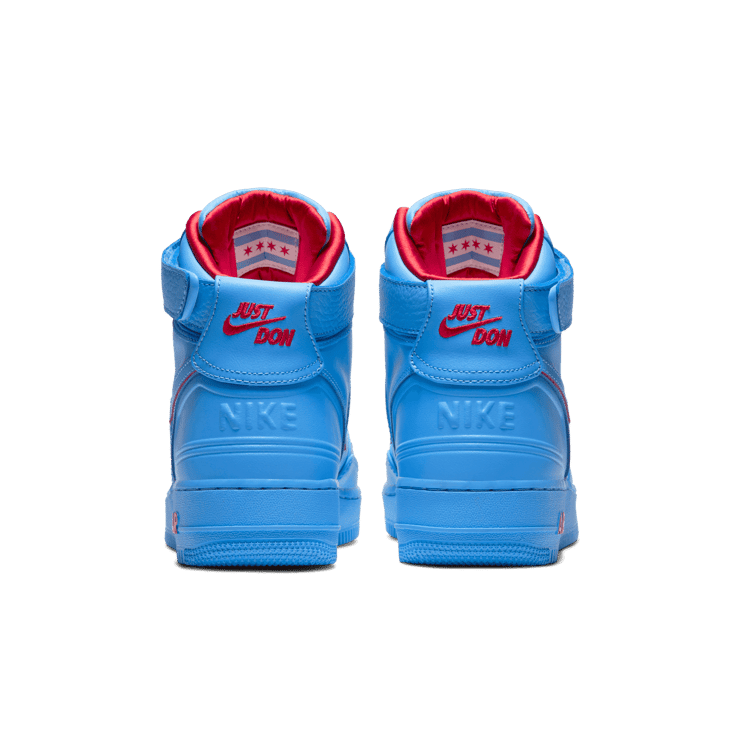 The Nike Air Force 1 High Just Don All-Star Blue edition was made to commemorate the 2020 NBA All-Star festivities that will take place in the Windy City. Made in collaboration with Don C for his Just Don imprint, this pair draws inspiration from the Chicago natives' city colors. Sporting an all-university blue leather upper with design elements from the Air Force 2 and Air Force 3 that provide a one-of-a-kind look on these AF1s. Red accents, custom branding on the tongue, back heel and insoles along with a Chicago city flag patch on the inside of the tongue finish things off for this pair.