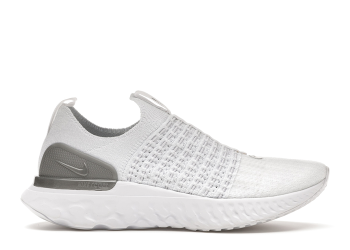 The Nike React Phantom Run Flyknit 2 White Pure Platinum (W) was released on Thursday, May 7, 2020 for $140. Your best opportunity to get these right now is by purchasing on secondary market sites such as Flight Club or GOAT.