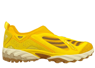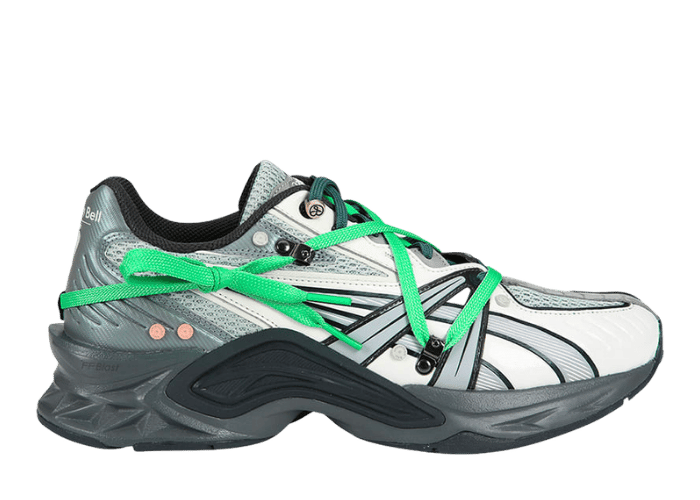 The running-inspired design remains on Fox’s debut sneaker, with the color palette sticking to a mixture of purple and green throughout. Light purple hues hit the suede reinforcements around the mudguard, midfoot, and heel paneling, while the mesh base takes on a vibrant, deep purple shade. More light purple suede lines the eyestays, vamp, and takes over the fox tail-inspired forefoot strap, the latter hosting a contrasting metallic silver hit on the end of the strap.